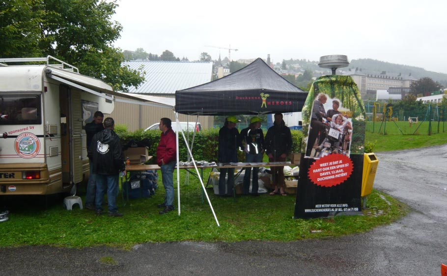 Duchenne Heroes 2008, 700 kilometer mountainbiken door Luxemburg, Belgie, Duitsland en Nederland, 280 deelnemers verdeeld onder 66 teams, ruim 100 vrijwilligers allemaal voor dat ene doel: Geld ophalen voor onderzoek naar de ziekte van Duchenne! Hieronder volgt een verslag van mijn belevenissen van de tocht met mijn team Mika–Brian.nl. Ons team bestaat uit 11 mannen en 1 vrouw, de meeste onbekende van elkaar maar in een week bij elkaar gesmeed tot een super gezellig en altijd voor elkaar klaar staand team! We hebben met ons team speciaal gereden voor Mika en Brian uit Reuver, een tweeling van 12 jaar die allebei de ziekte van Duchenne hebben.